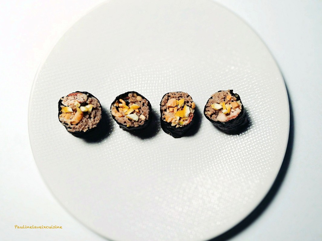 Versez maintenant quelques gouttes de citron sur la préparation mais aussi sur la feuille Nori afin de la rendre souple, pour pouvoir la rouler.