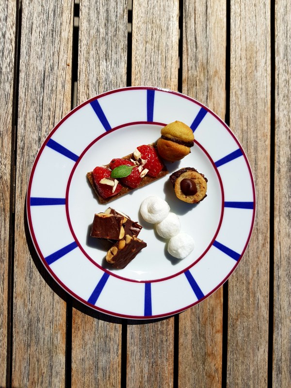 Tarte aux fraises basilic et croquant amande chocolat