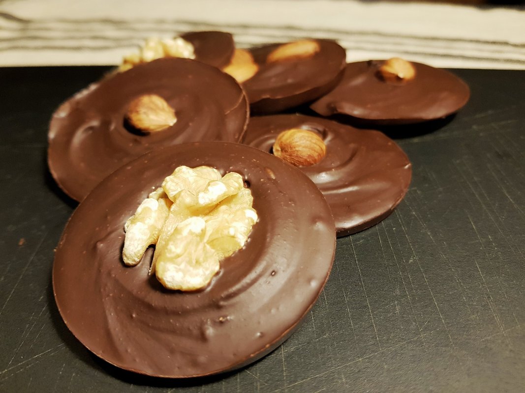 Déposez une cuillère à café ou deux dans le fond de vos moules. Ajoutez vos amandes, noix, noisettes et laissez prendre au réfrigérateur pour au moins 1 heure. Savourez à l’heure du thé avec (presque) zéro culpabilité.