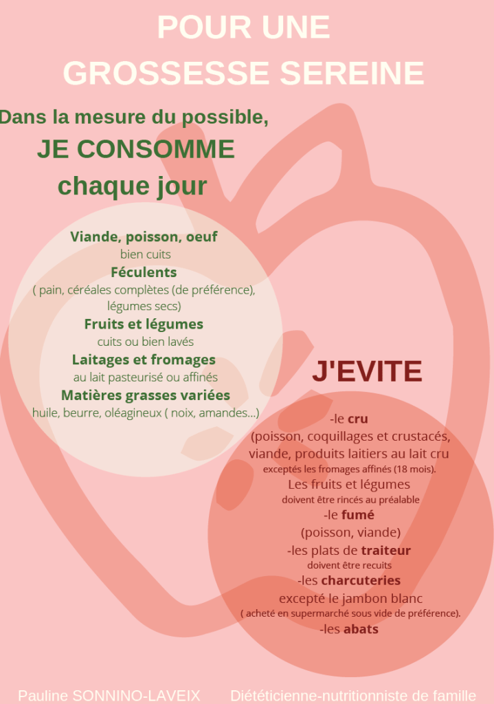 2°) Pour ce qui est des nutriments : on ne change rien si ce n’est que l’objectif reste de lier plaisir et bonne nutrition pour le bébé à naître (et pour nous accessoirement ! 🙂