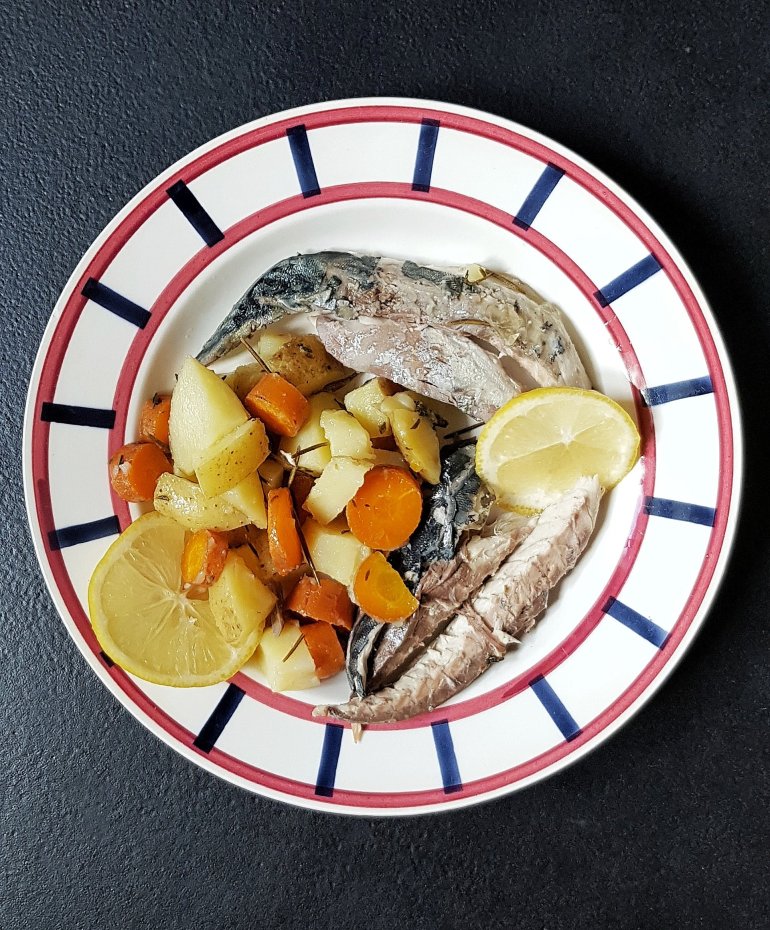 Savourez chaud, ou froid le lendemain, après avoir levé les filets du maquereau. Versez un filet de jus de citron et/ou d’huile d’olive.