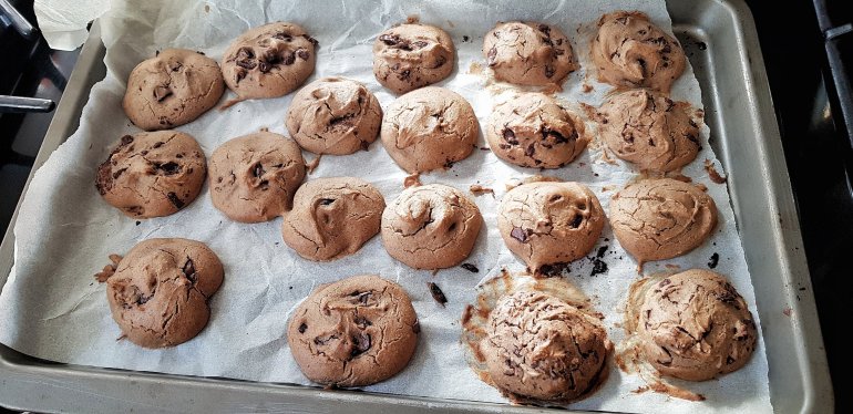 Inutile de vous embêter avec la mise en place des pookies un à un, un petit moule à gâteau allant au four fera très bien l’affaire avec une cuisson de 30 minutes au lieu de 12.