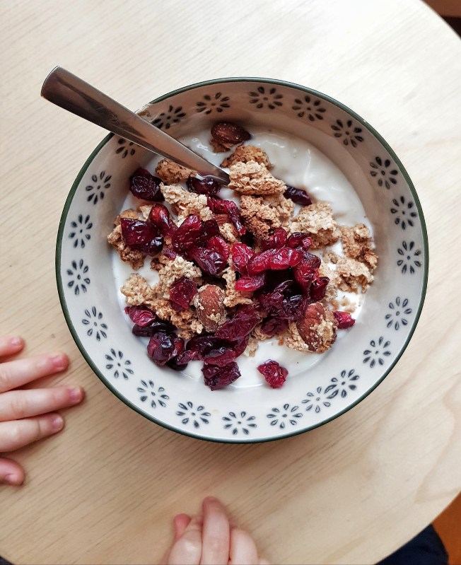Et last minute : 1 sojade nature ou sojasun et quelques cranberries séchées.