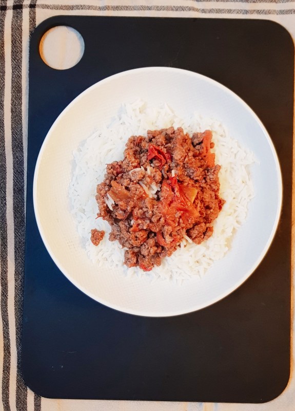 Pour la sauce : découpez grossièrement vos tomates et les steaks hachés mettez-les dans la casserole à feu doux et ajoutez le bouillon de poule et le fromage. Une fius le fromage fondu et la viande bien cuite à coeur, la sauce sera prête.