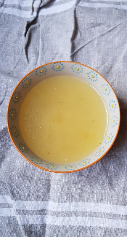 On savoure le cabillaud avec des légumes vapeur et un soupçon d’huile d’olive par exemple et le bouillon avec un trait d’huile d’olive, un brin de ciboulette ciselée et pourquoi pas des vermicelles de riz, des dés de carottes… bref : on s’amuse et on recycle!:)