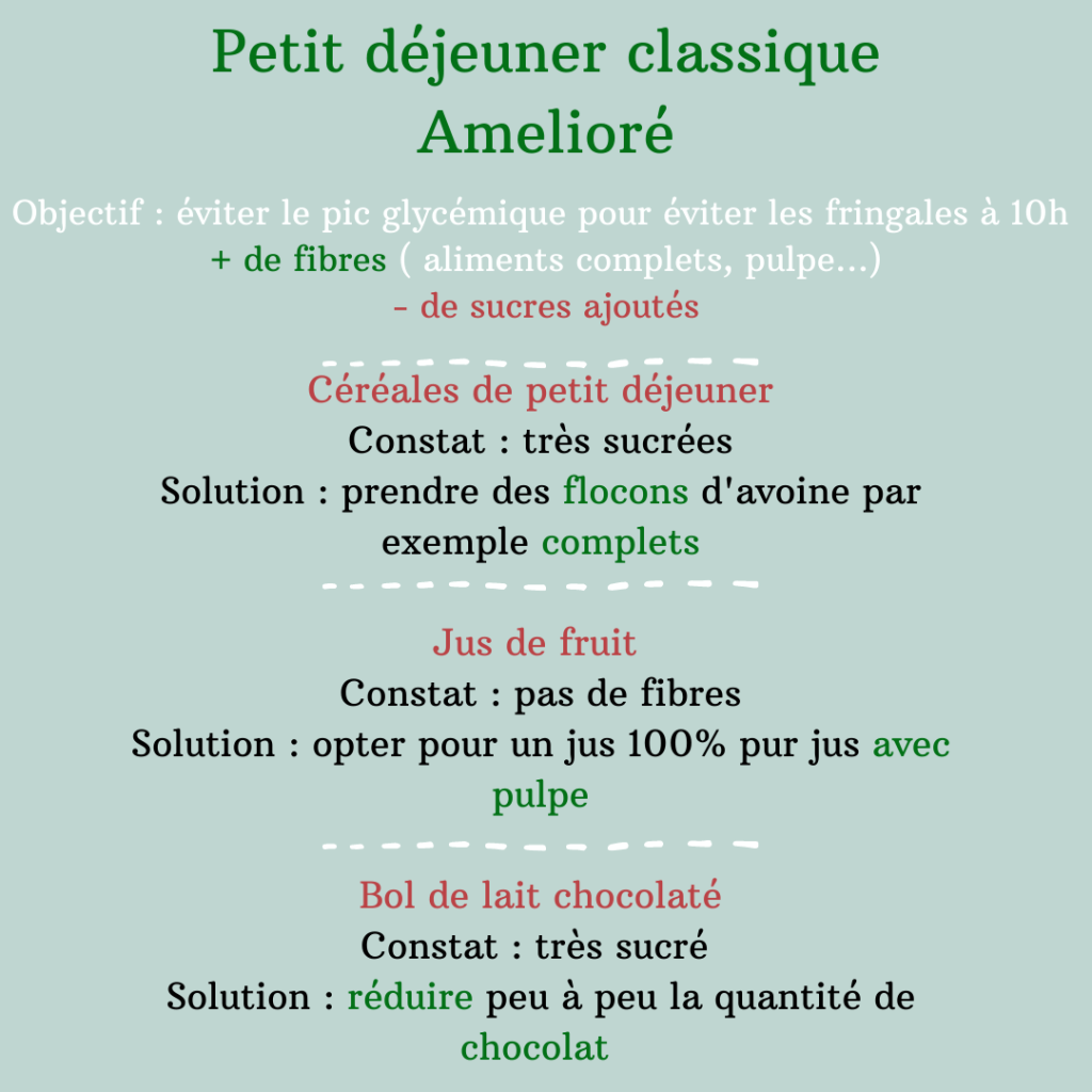 Il serait alors marrant de donner à son enfant un grand bol de lait chocolaté, des céréales bien sucrées et un verre de jus d’orange sans pulpe ?
