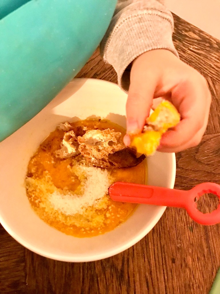 Maintenant c’est au tour del bambino de faire son propre potage avec des ingrédients que vous présenterez dans des petits bols devant lui : par exemple :