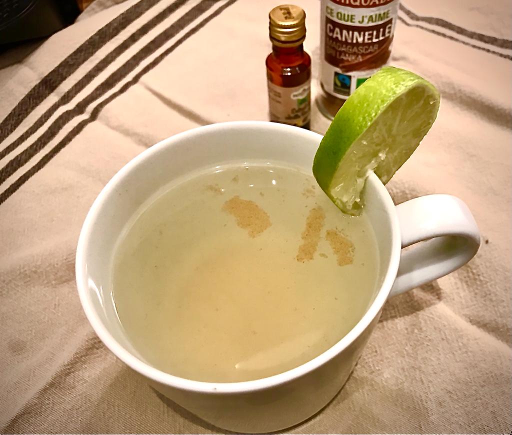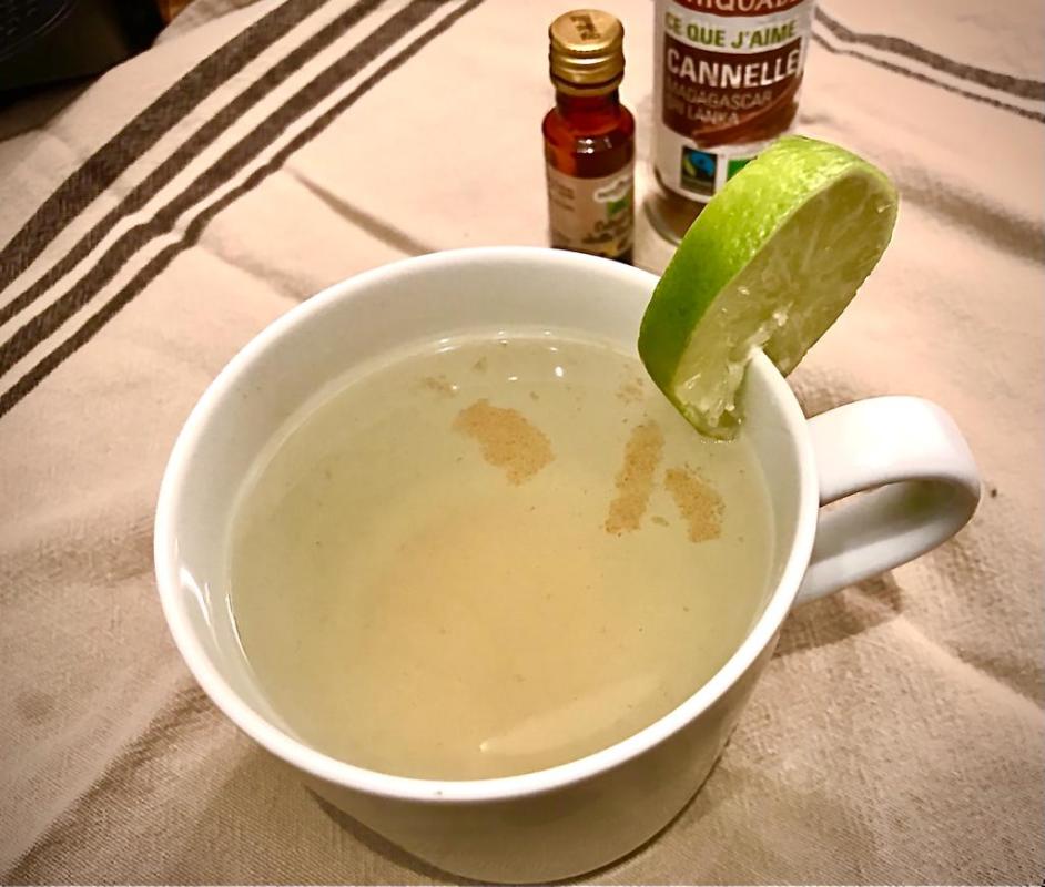 Un trait de cannelle, de vanille liquide, le jus d’un citron vert, le tout dans de l’eau chaude et ? Du repos, bien-sûr !