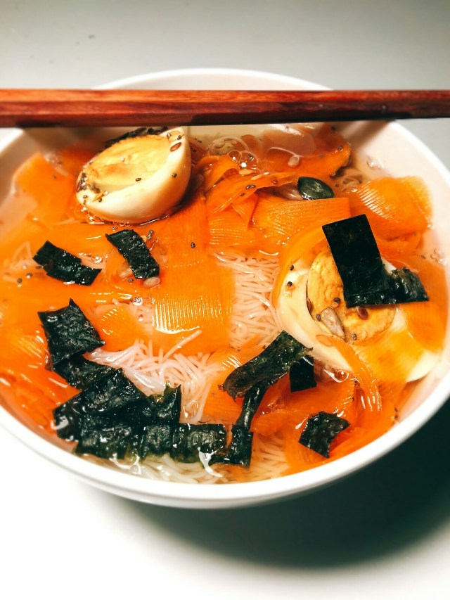 Soupe de vermicelles de riz, carottes, oeufs